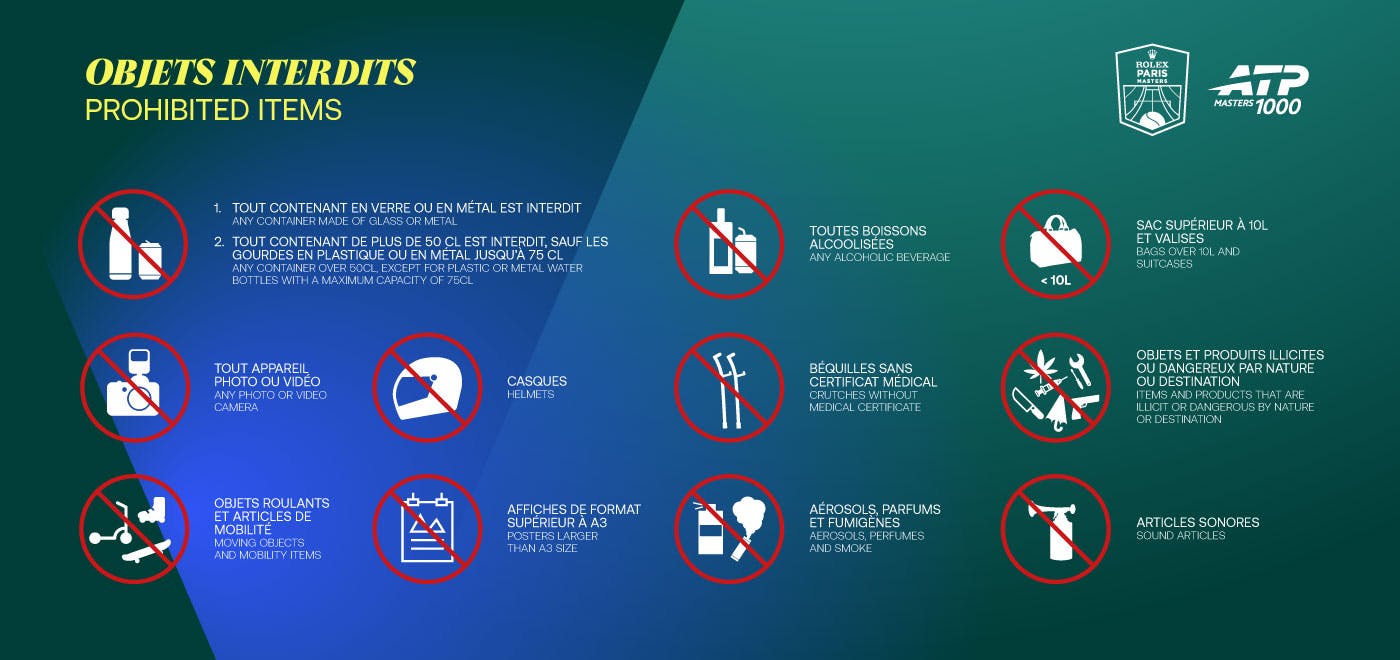 A cloakroom service is available for you to store any items that cannot be brought into the venue. You will be able to collect your belongings after the event, up to 15 minutes following the end of the last match. The cloakroom is located in the Grand Hall of Paris La Defense Arena (to the left of the main staircase).